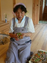 お母さん方が取り組んでいるのは、ハンカチの草木染。