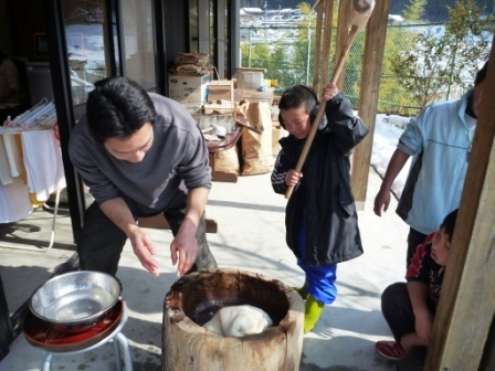 そうめんだけではありません。渓流で、トマト、キュウリ、スモモが、どんぶらこ~っと流れてきます。
