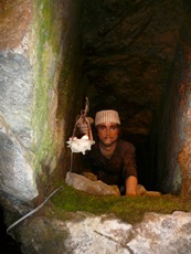 細い竹の枝を竿にして釣り糸を結びつけ、川にたらすだけ。餌に食いついた瞬間に、ぱっと引き上げるのです。